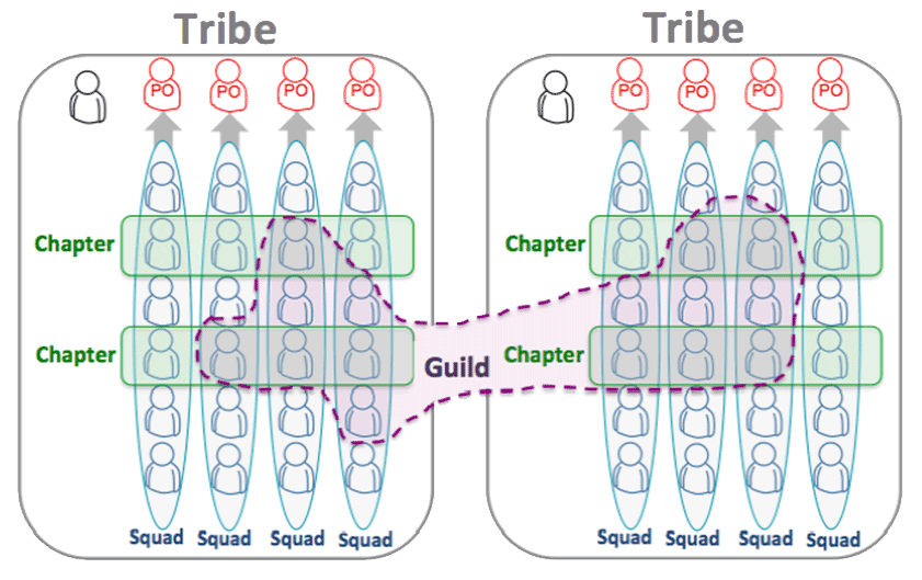 Bei dem Musik- und Video-Streamingdienst Spotify ist aus der Anwendung verschiedener agiler Methoden ein Organisationsmodell geworden. Es wird heute gemeinhin als Spotify-Modell bezeichnet. Im Rahmen der digitalen Transformation haben einige Unternehmen ihre Organisation nach dem Spotify-Modell ausgerichtet, in der Finanzbranche z.B. die ING, die Commerzbank und die Sparkassen. Mit dem Organisationsmodell von Spotify wird eine Matrixorganisation auf Basis von Tribes, Squads, Chapters und Product Ownern eingeführt.